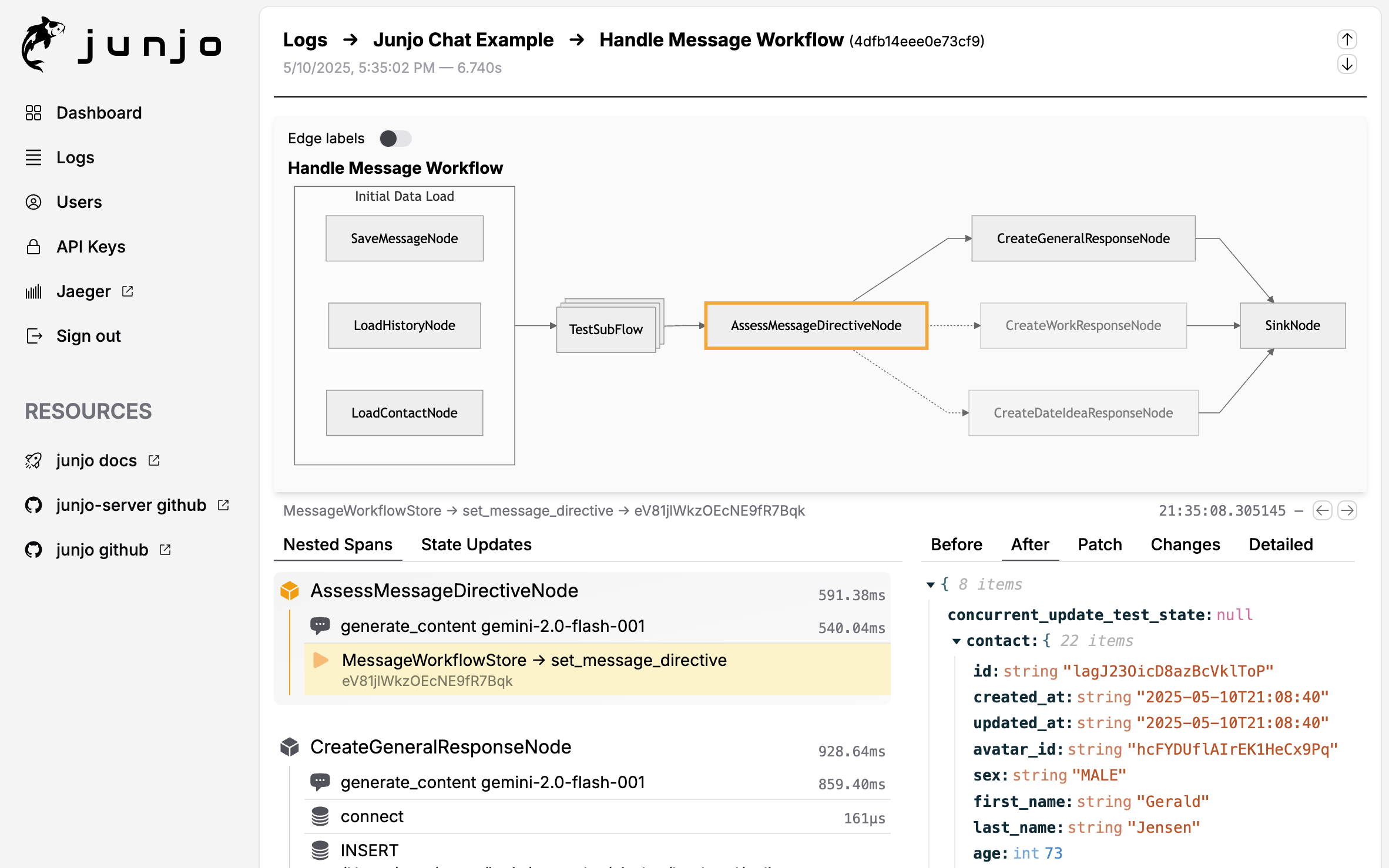 Whether you’re building a simple chatbot, a complex data manipulation pipeline, or a sophisticated workflow with dynamic branching and parallel execution, Junjo provides the tools to define and debug your logic as a clear graph of nodes, edges, and state updates.